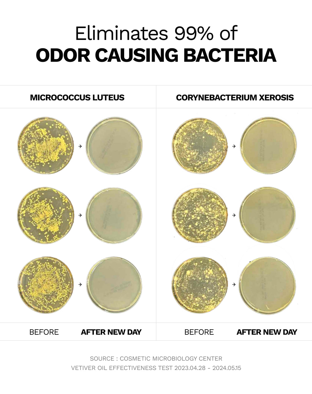 - Vetiver Oil - Removes 99.9% of odor-causing bacteria