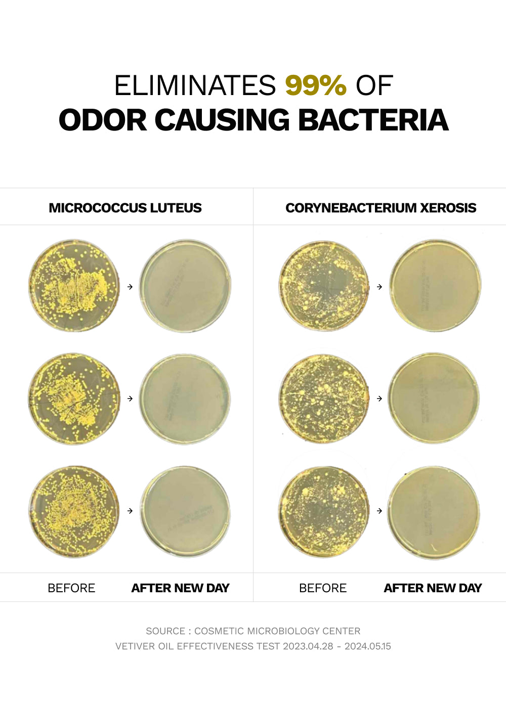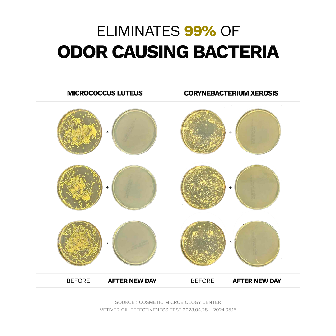 - Vetiver Oil - Removes 99.9% of odor-causing bacteria