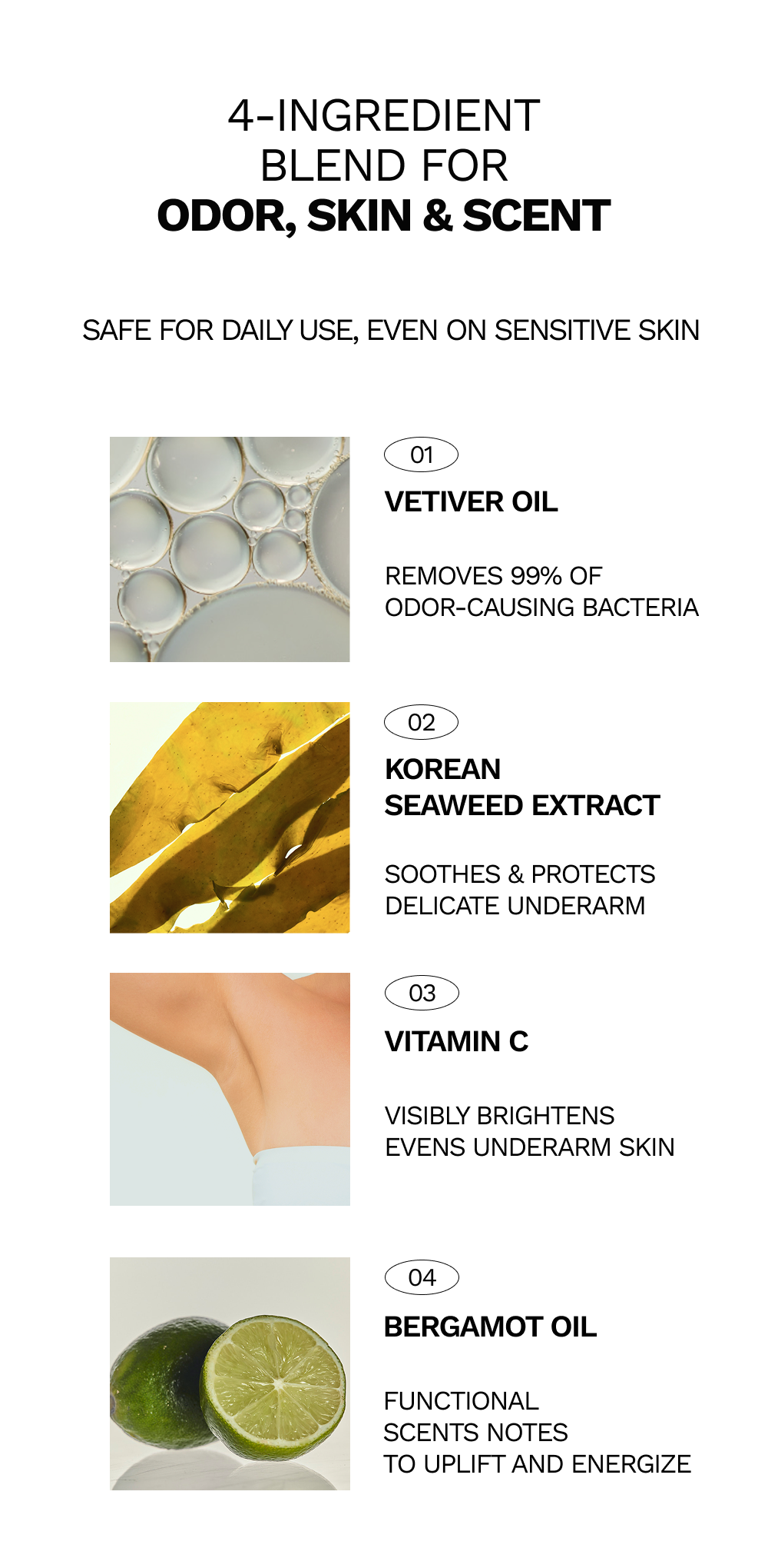 - Smoothes and protects delicate underarm skin